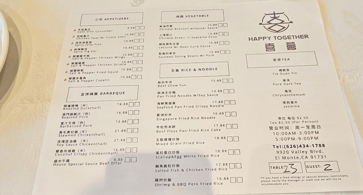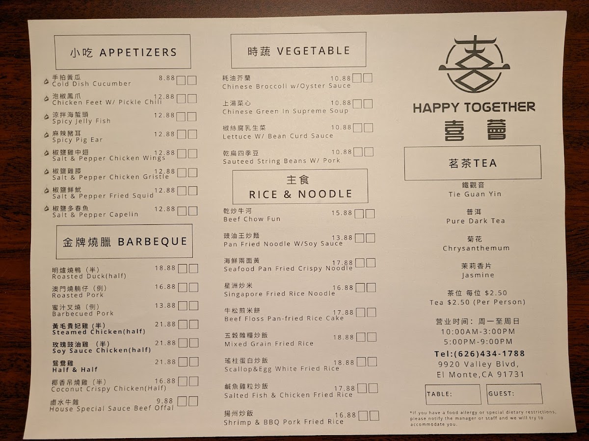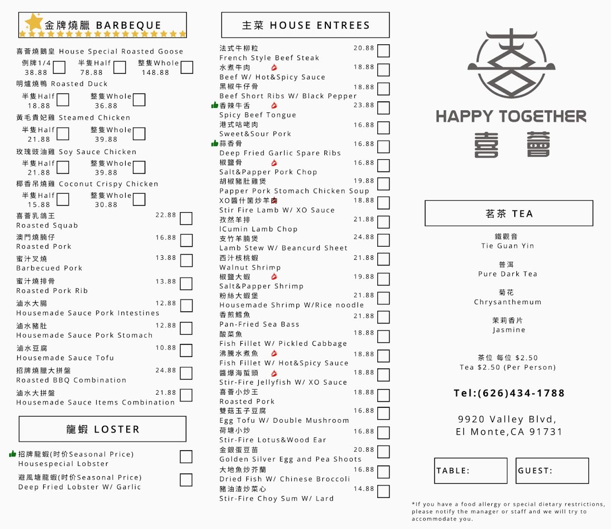 For inquiries, you can reach Happy Together at +1 626-434-1788. Come hungry and leave happy!